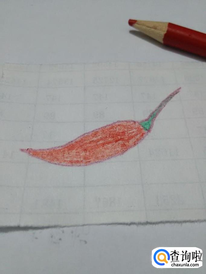 用红笔将左侧的辣椒果实涂成红色,小辣椒就画完了。