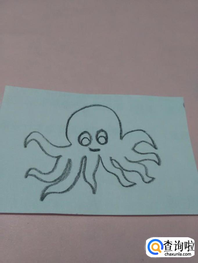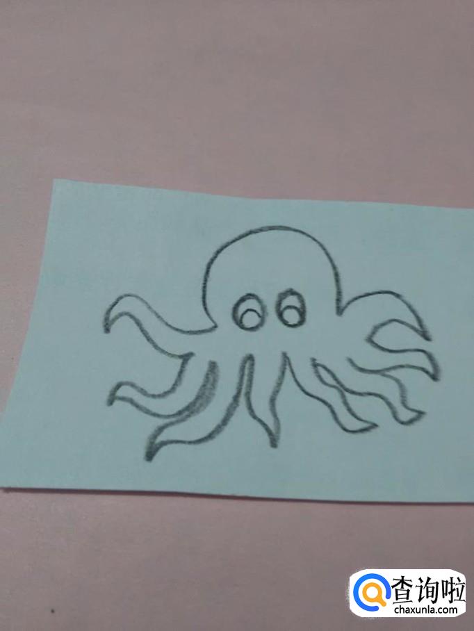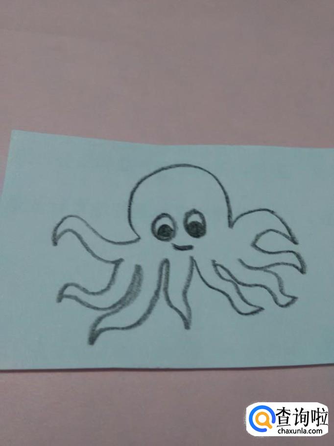 先用黑笔在纸上画一条弯弯的弧线,表示小章鱼的头。