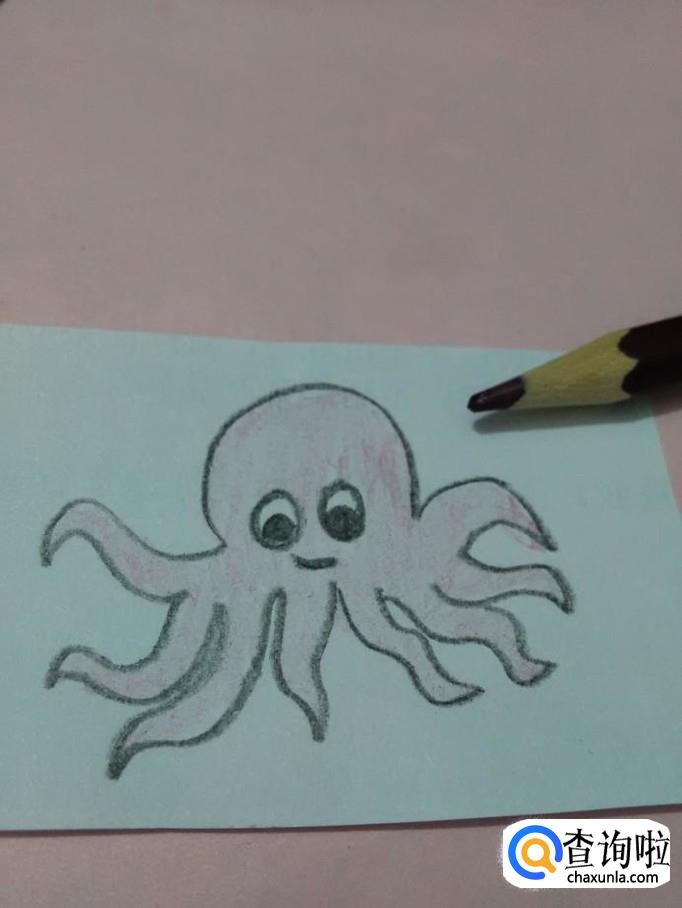 画小章鱼,用弧线、曲线、椭圆形来画,特别简单,下面就来画小章鱼。