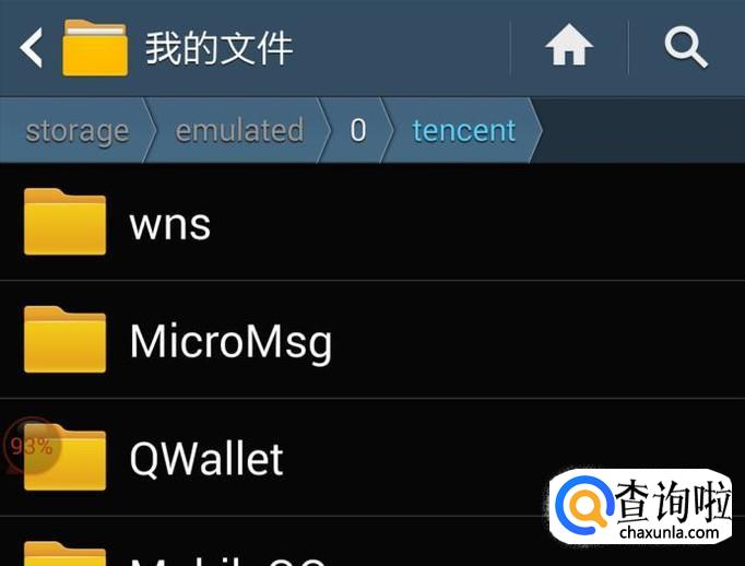 在显示的文件夹里找到“tencent”,点开,看到里面有个“MicroMsg”文件夹,这就是微信文件夹。