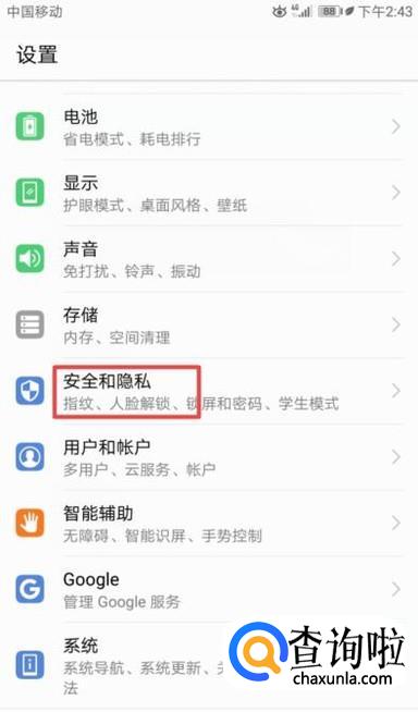 之后我们点击安全和隐私;