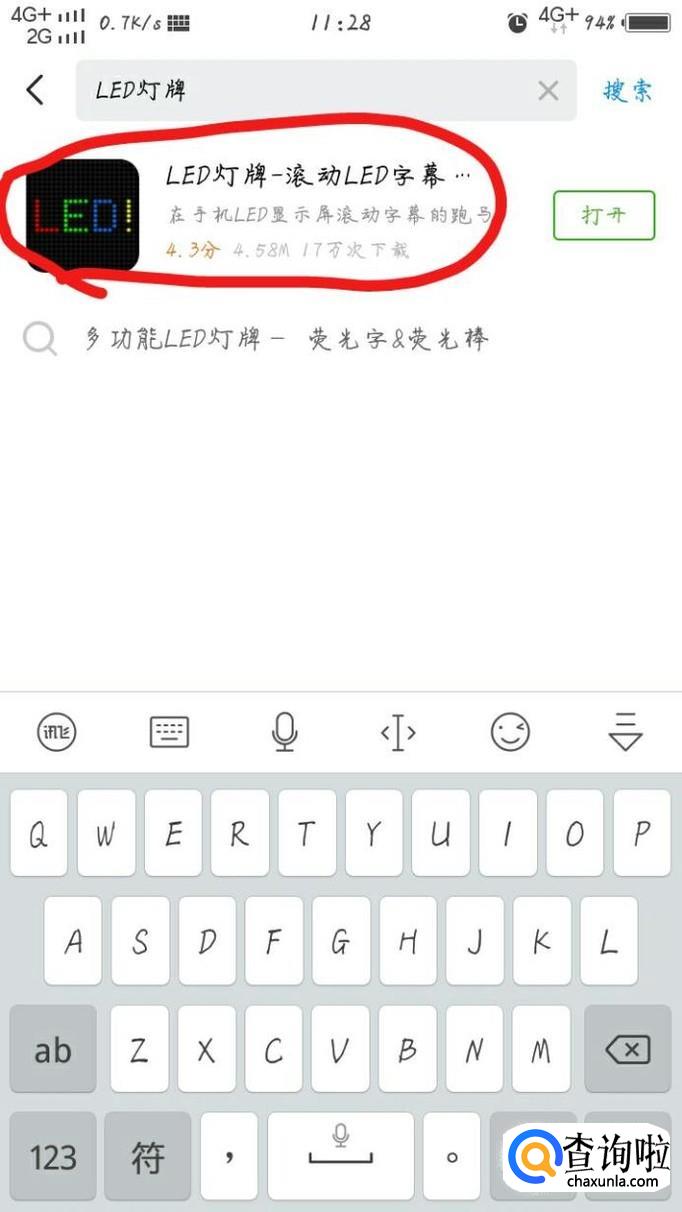 首先,去应用商店下载安装一个LED灯牌app,并且点击打开。