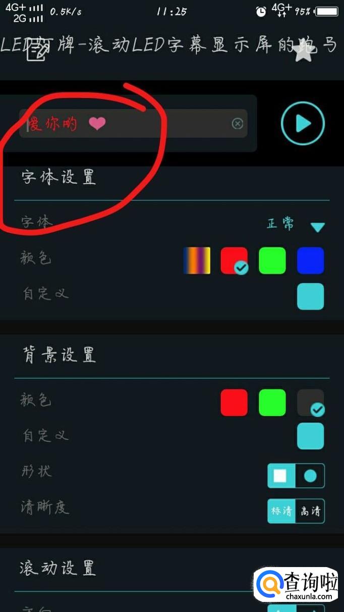 另外,在下面的一次选项中可以设置字的颜色,大小,背景,滚动速度和效果等等。