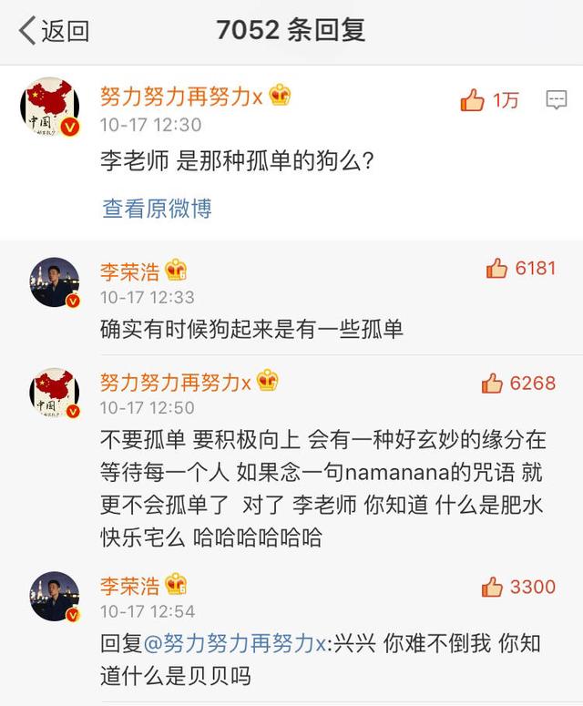 张艺兴:不要孤单,要积极向上,会有一种好玄妙的缘分在等待每一个人,如果念一句namanana的咒语,就更不会孤单了,对了,李老师,你知道,什么是肥水快乐宅么,哈哈哈哈哈哈。