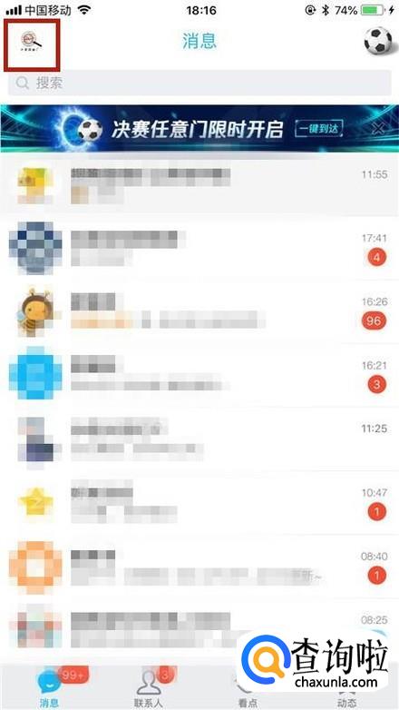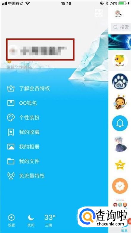 如下图,点击屏幕左上方的个人头像。