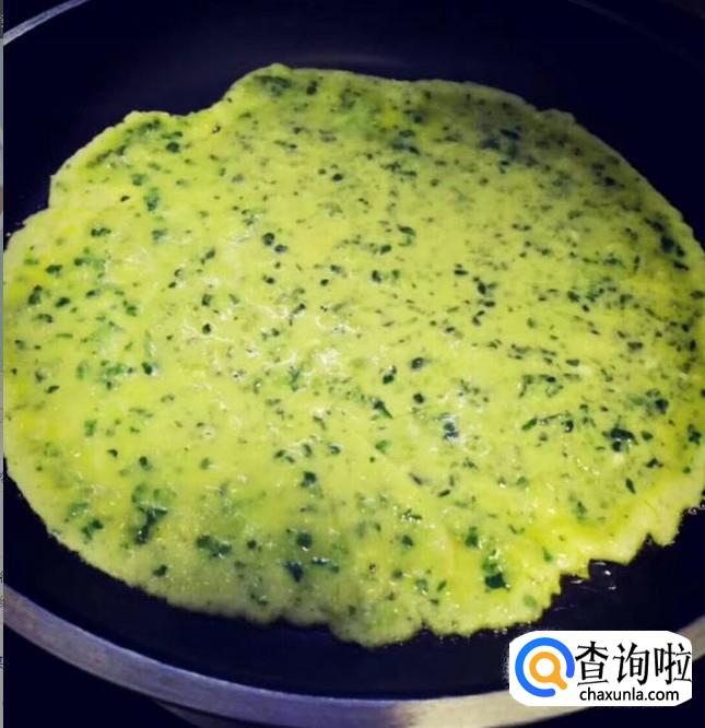 在准备倒面汁时,在锅底扫一层油,接下来倒入适量的面汁入锅,这时的火可以中小火;等到面皮上色后可以稍调低一些火煎制微黄即可。