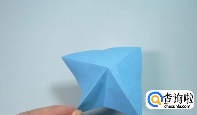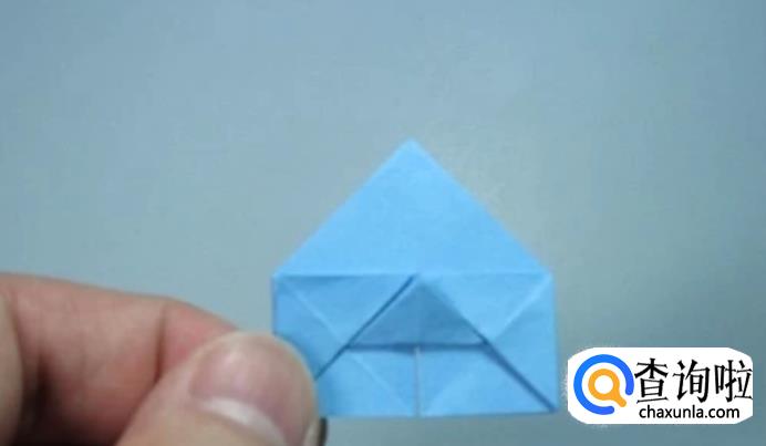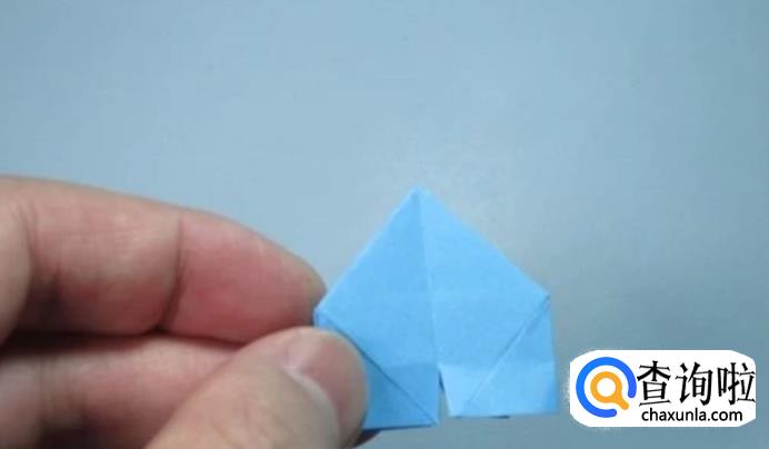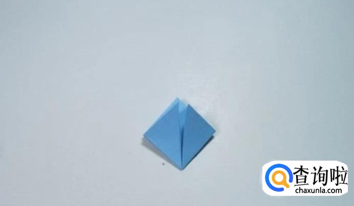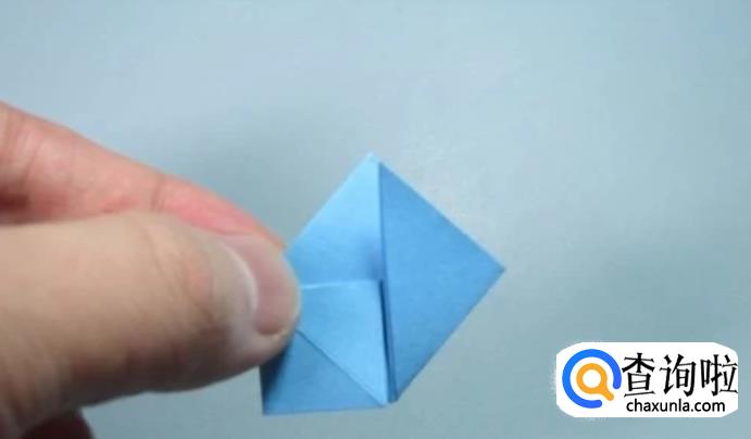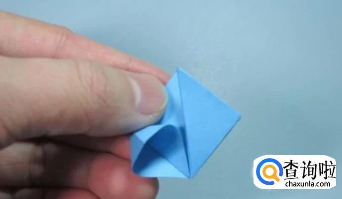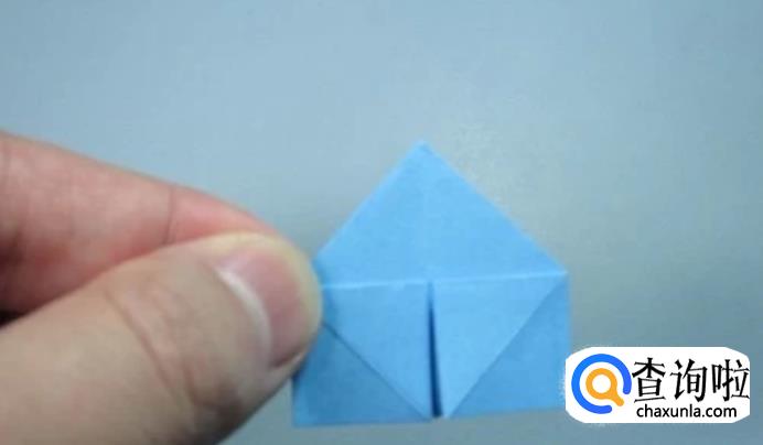 将四个小的正方形底部中间的角折向对角,对齐,形成四个三角形。