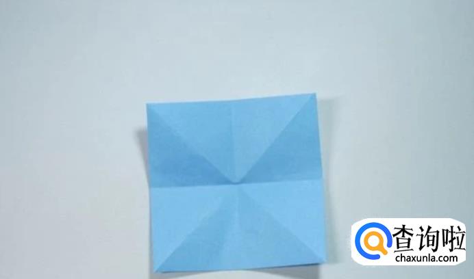 首先准备一张正方形的纸片,然后将纸片的四个小角分别沿着对角线对折并且展开折痕。