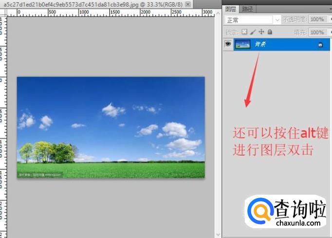 最后,你还可以通过按alt键,然后双击背景图层,则可以直接对背景图层进行转化,如下图所示。