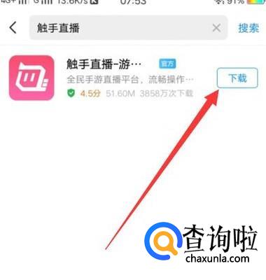 进入之后,搜索触手直播,将其下载安装到手机上面,如图所示。