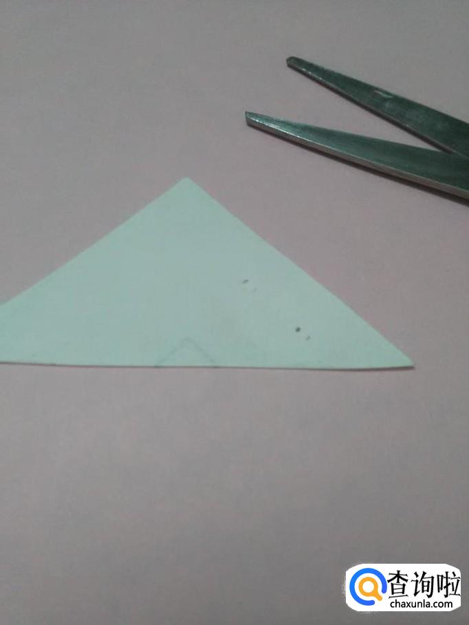 再用剪刀从另外一个三角形上面剪下一个小纸条,用来做叶柄。