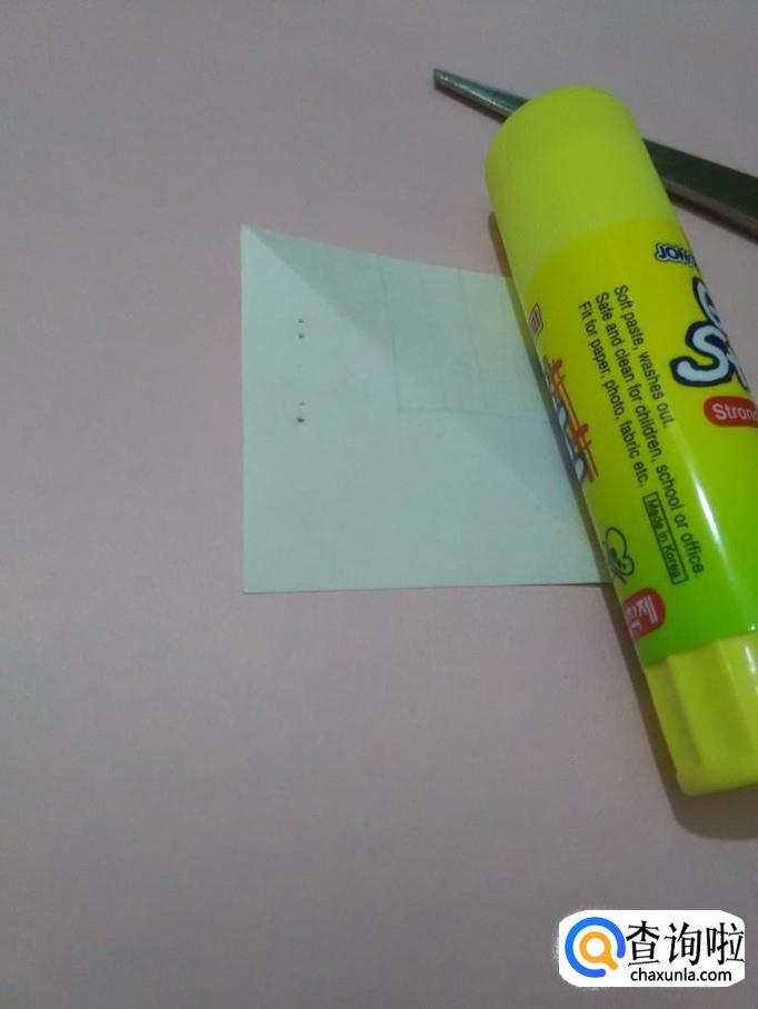 准备一张正方形纸、剪刀、胶棒。