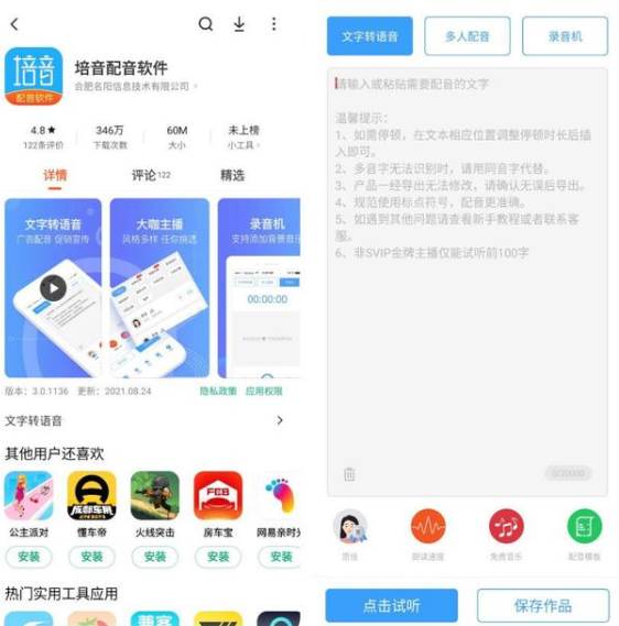 1、首先在手机自带的应用商店里搜索关键词“文字转语音”,找到相应软件下载并安装它。