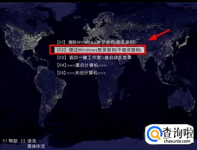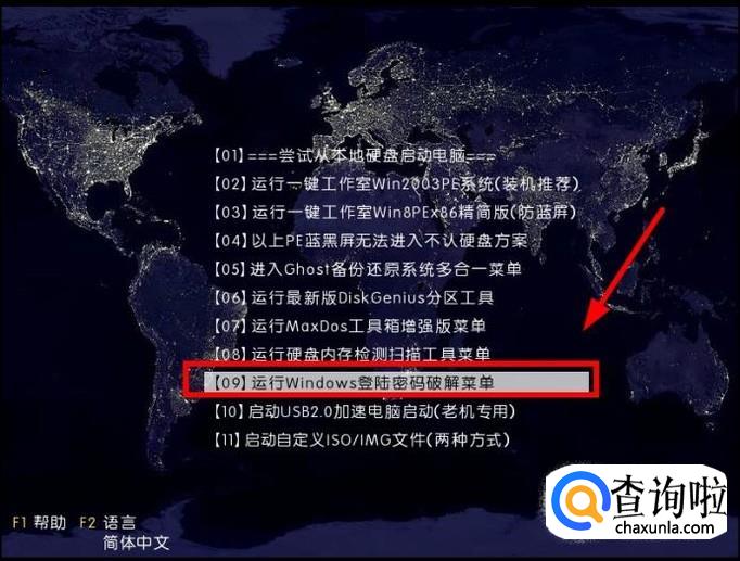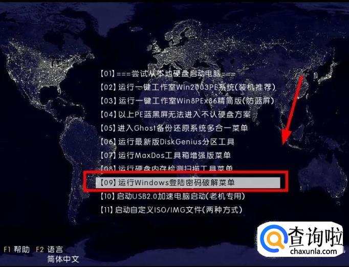 在U盘PE系统中,选择“运行Windows 登录密码破解菜单”