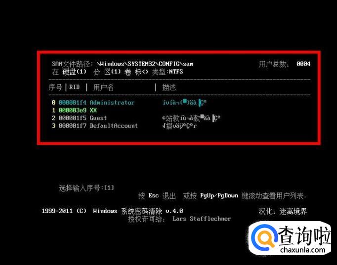 然后选择你设置密码的账户,输入序号,按“Enter”键
