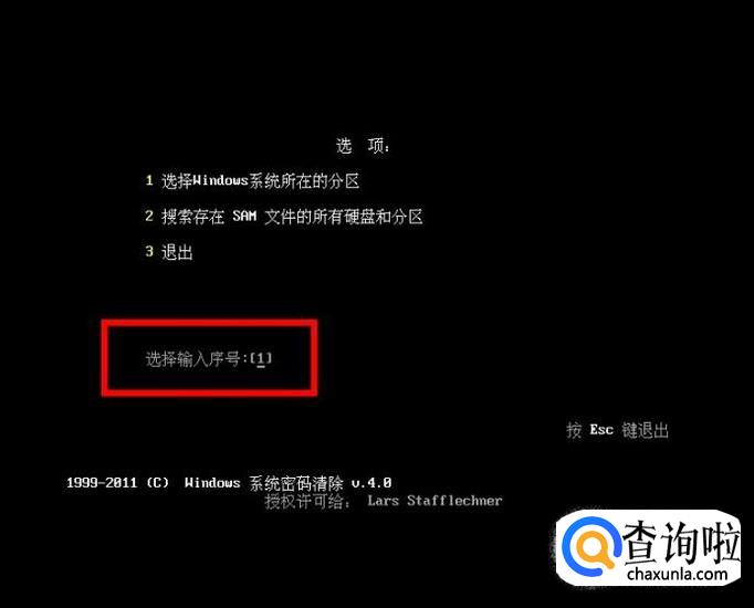 选择Windows系统所在分区,选择好后输入序号1,按“Enter”键