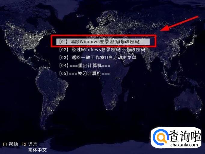 进入U盘PE系统中,点击“运行Windows登录密码破解菜单——清除Windows登录密码(修改密码)”选项