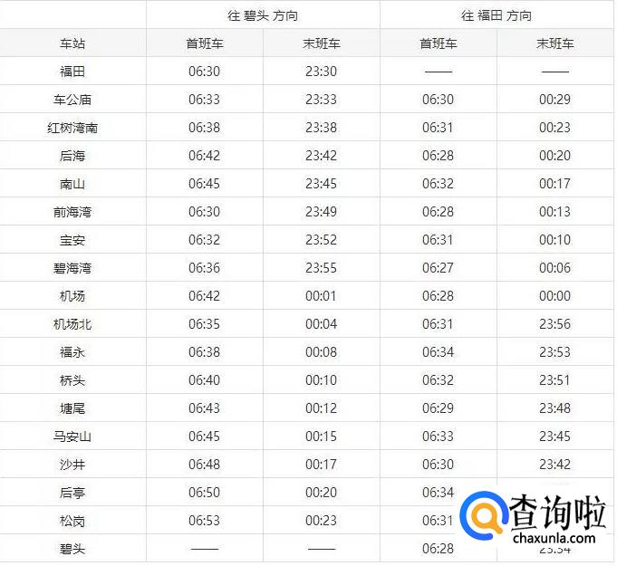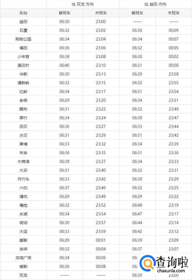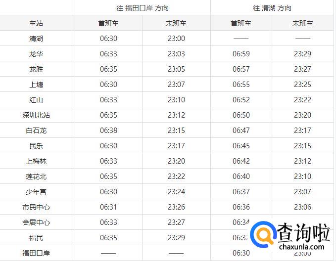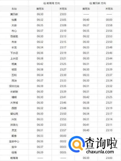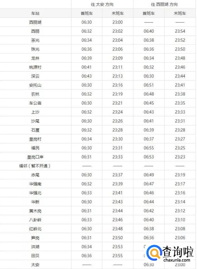 2019深圳地铁各线路运营时间表