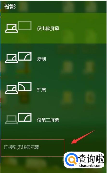 在电脑设备上,打开侧边栏,点击设备选择投影(也可以通过快捷键win+P键调出投影设置菜单),然后在列表底部点击“链接到无线显示器”添加无线显示器。