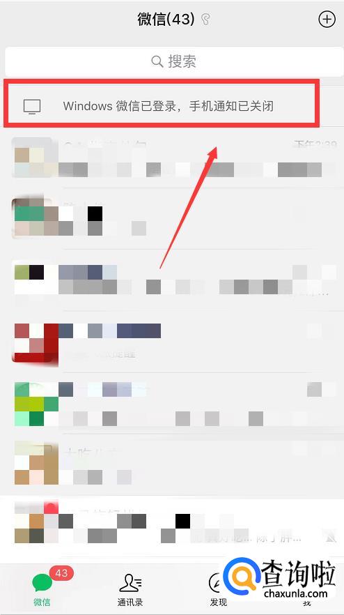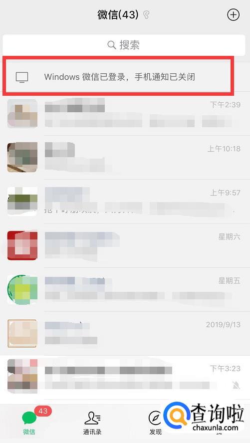 电脑版微信登陆成功后手机上会显示“Windows微信已登录,手机通知已关闭”。