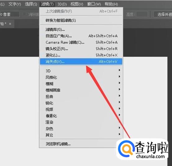 选中图层1,然后点击“滤镜”,选择“消失点”,如图所示。
