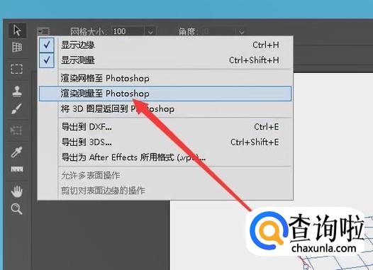 点击工具栏按键,选择“渲染网格至photoshop”,如图所示。