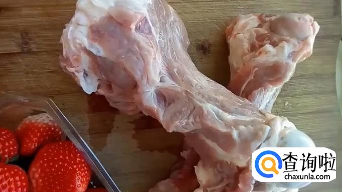 在超市购买两根猪大骨,选择骨头表面有肉的,颜色鲜亮的骨头,冲洗干净。