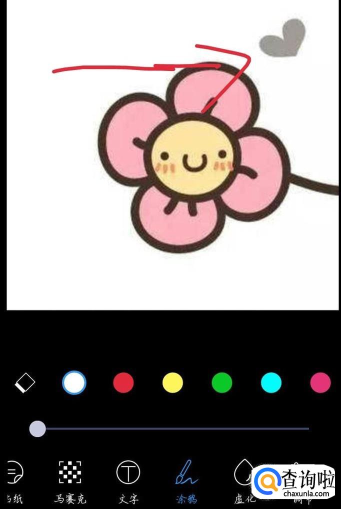 点击“涂鸦”这个选项,如图1箭头所示。选择红色,自己画一个箭头出来。会出现一个新的界面,如图2所示。