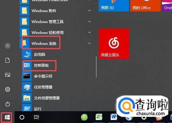 首先,我们点击电脑桌面左下角的微软按钮,弹出的界面,我们下滑中间的界面,找到windows系统,然后我们点击打开它,弹出的界面,我们点击控制面板;
