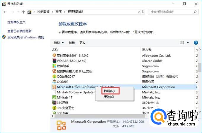 之后我们右击,弹出的界面,我们点击卸载,这样就可以彻底卸载office2010了。