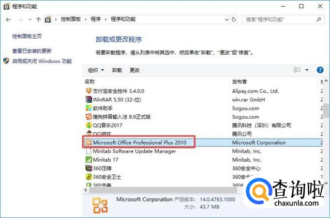 弹出的界面,我们找到Microsoft Office Professional Plus 2010,然后先点击选中它;