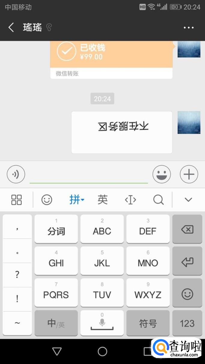 保存旋转后的图片,然后找一个微信好友发送刚刚的图片,可以看到文字是反向的。
