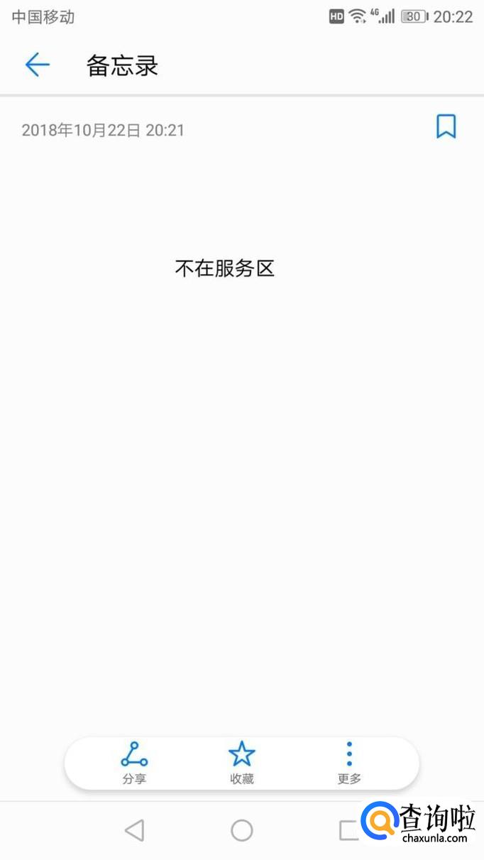 首先,打开手机备忘录,在文本中间位置输入文字,如“不在服务区”。