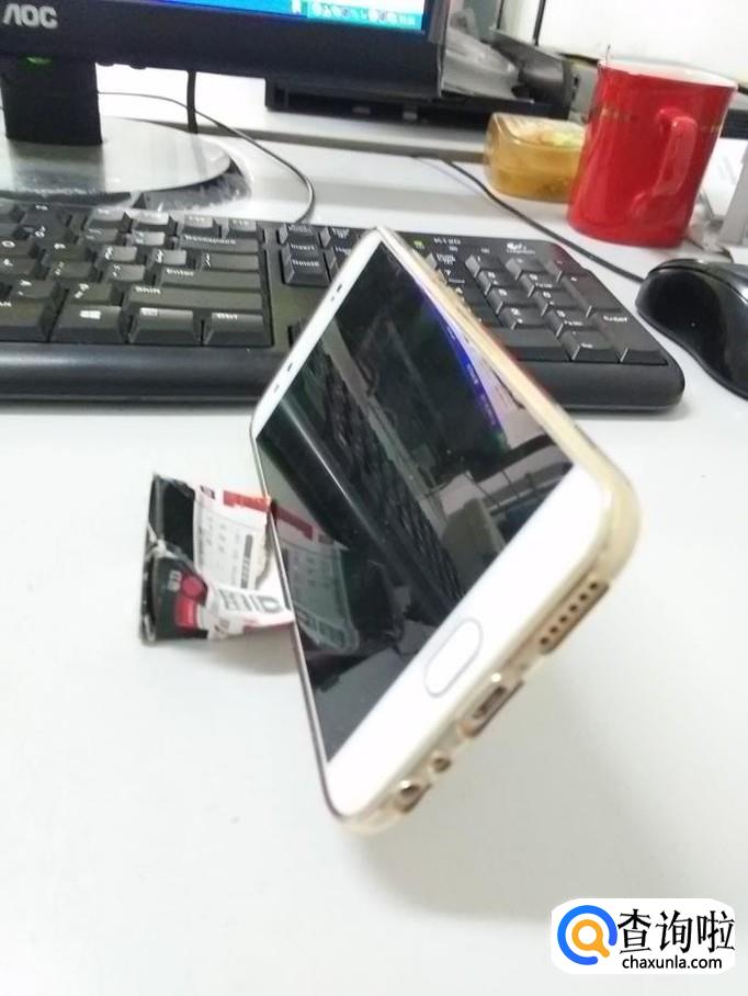 用手将左边的盒口按下去,按下去的目的是不让纸盒挡住手机屏幕。