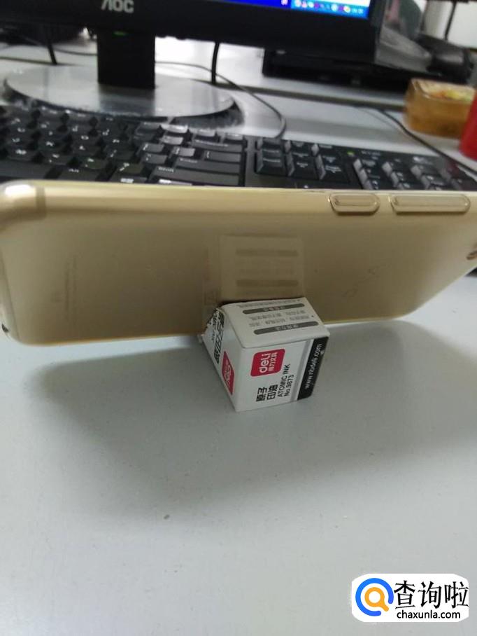 将手机放在切口上,立得稳稳的,手机支架就做好了。