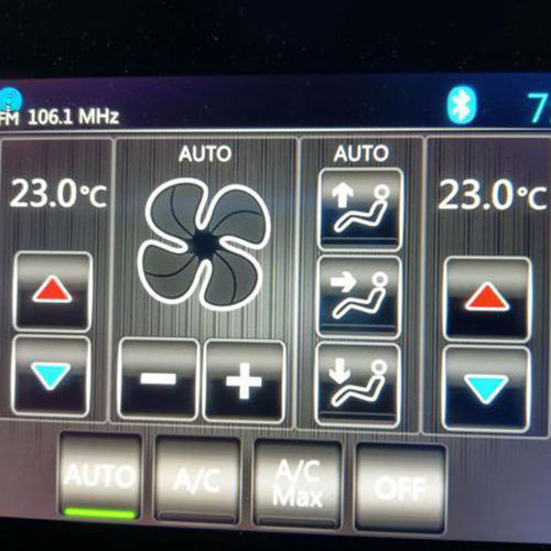 自动空调能根据光线传感器和多个车内温度传感器自动选择打开或关闭各不同位置出风口、自动调节风量、自动打开/关闭A/C开关,以调节冷热风比例的形式控制出风口温度,保证车内恒温。