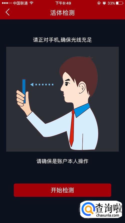 进入活体检测界面,上传身份证之后还将对人脸进行认证,根据提示进行即可。