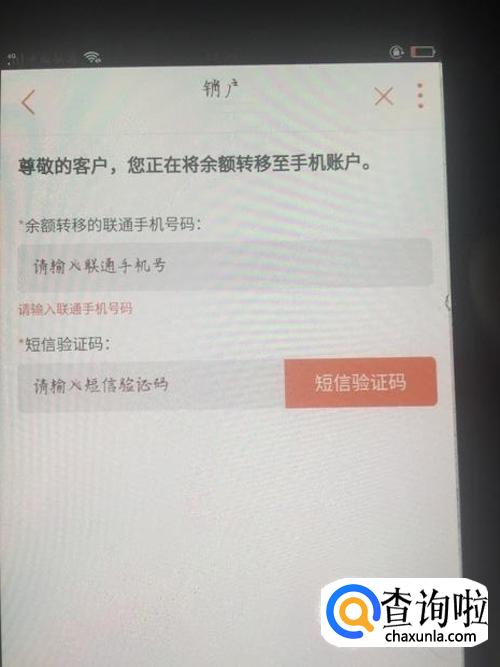 认证完成之后,因为您的销户手机号还有余额,所以需要输入余额转移的手机,然后通过手机短信进行验证,完成转移之后,手机号即可销户成功。