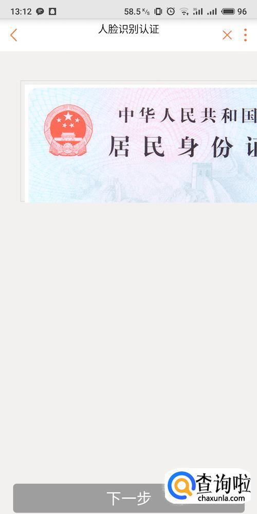 进入人脸识别认证界面,根据提示上传身份证的正反面进行认证。