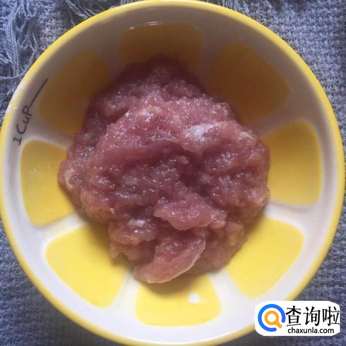 首先将买回来的瘦肉洗干净,剁成肉泥,如下图所示。