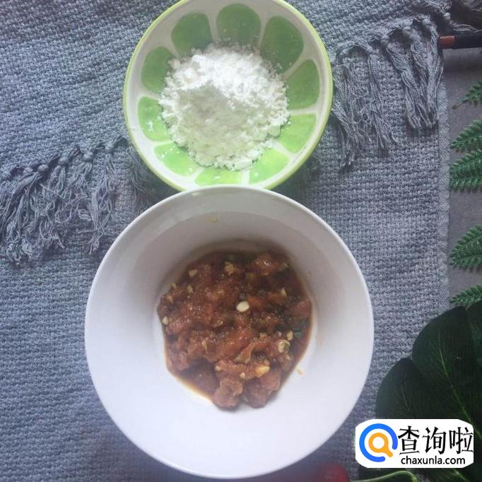 然后用适量的面粉把腌制好的肉泥搓揉成团,如下图所示。
