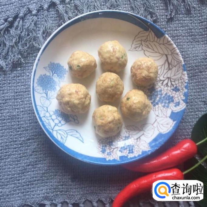 接着把搓揉好的面粉团做成自己想要大小的肉丸子,如下图所示。