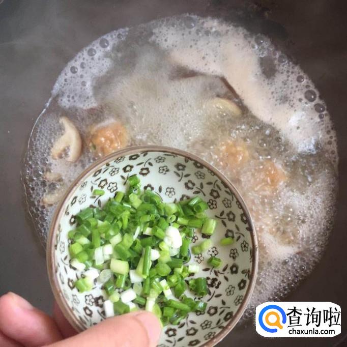 然后把香葱切成葱花,撒入锅中煮一分钟,如下图所示。