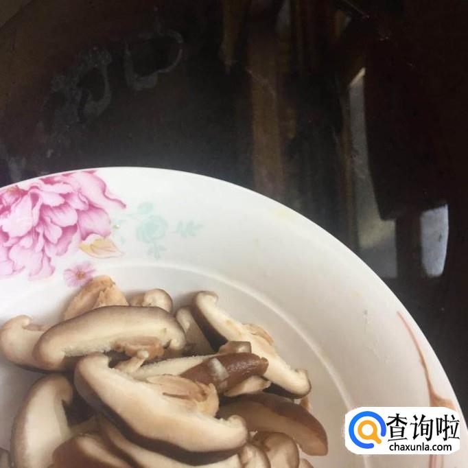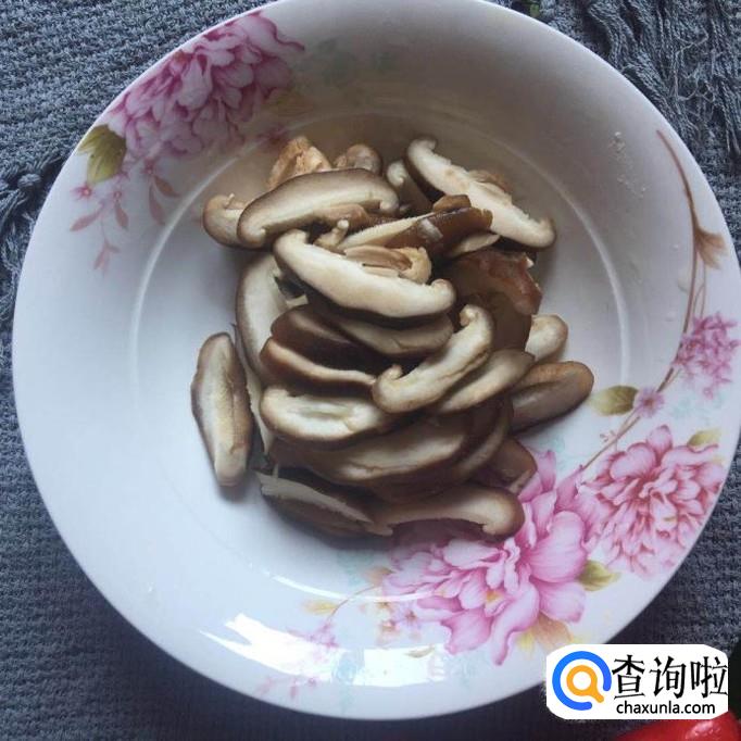 然后把香菇切成薄片,倒入锅中煮五分钟,如下图所示。