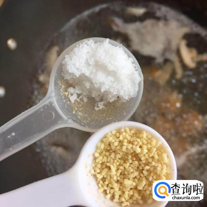 接着往锅中加入适量的盐巴和味精,还有一勺的茶油,小煮片刻就可以出锅了。