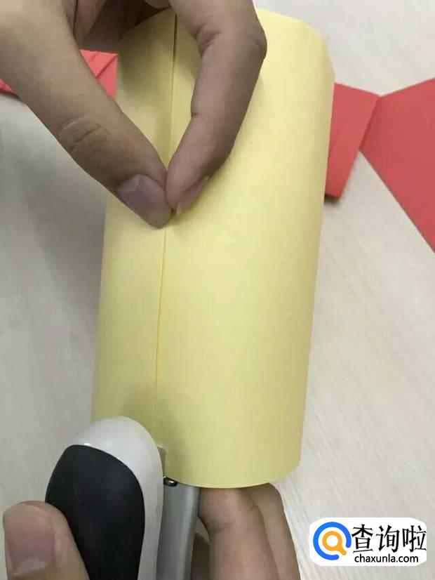 用订书机固定开口处。为便于幼儿操作,也可将这一步的订书机替换成白乳胶或者胶棒。