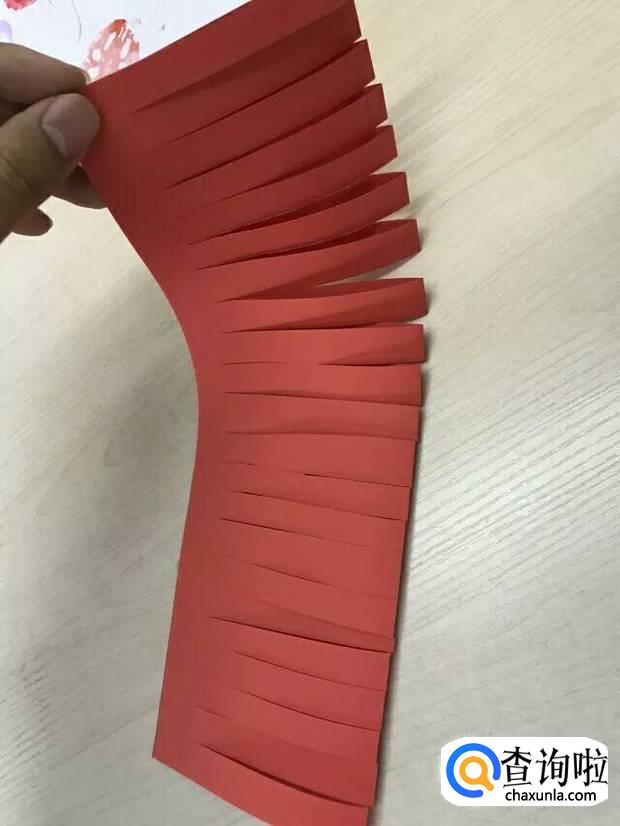 粘贴细长红纸条做灯笼提手,彩纸灯笼制作完成。