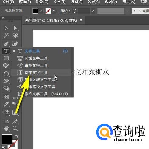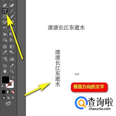 若想输入竖向(也就是垂直方向)的文字,那么,如图所示,点“直排文字工具”