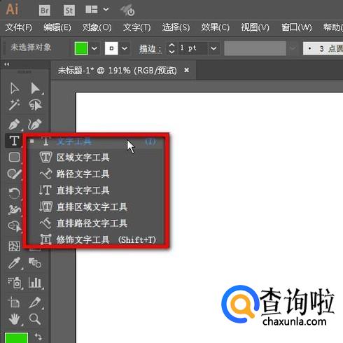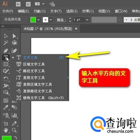 这里一共有七项工具,如想文字是水平方向显示的,那么,我们直接就点第一个,也就是在工具栏上默认显示的那个图标的文字工具。