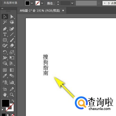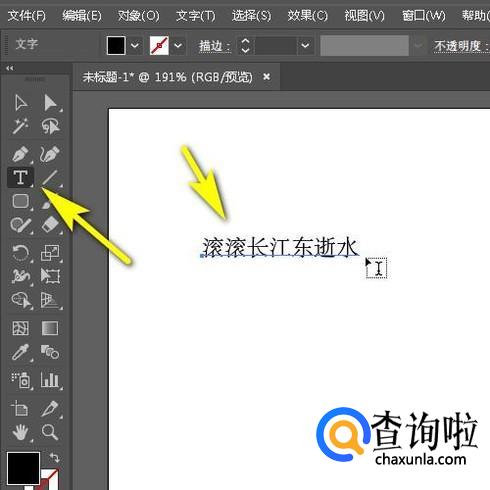 比如,画板中已输入了一行水平方向的文字。接下来,要把这些文字修改为垂直方向的。